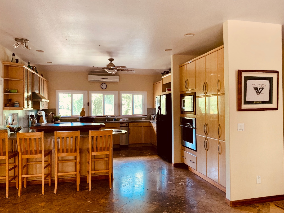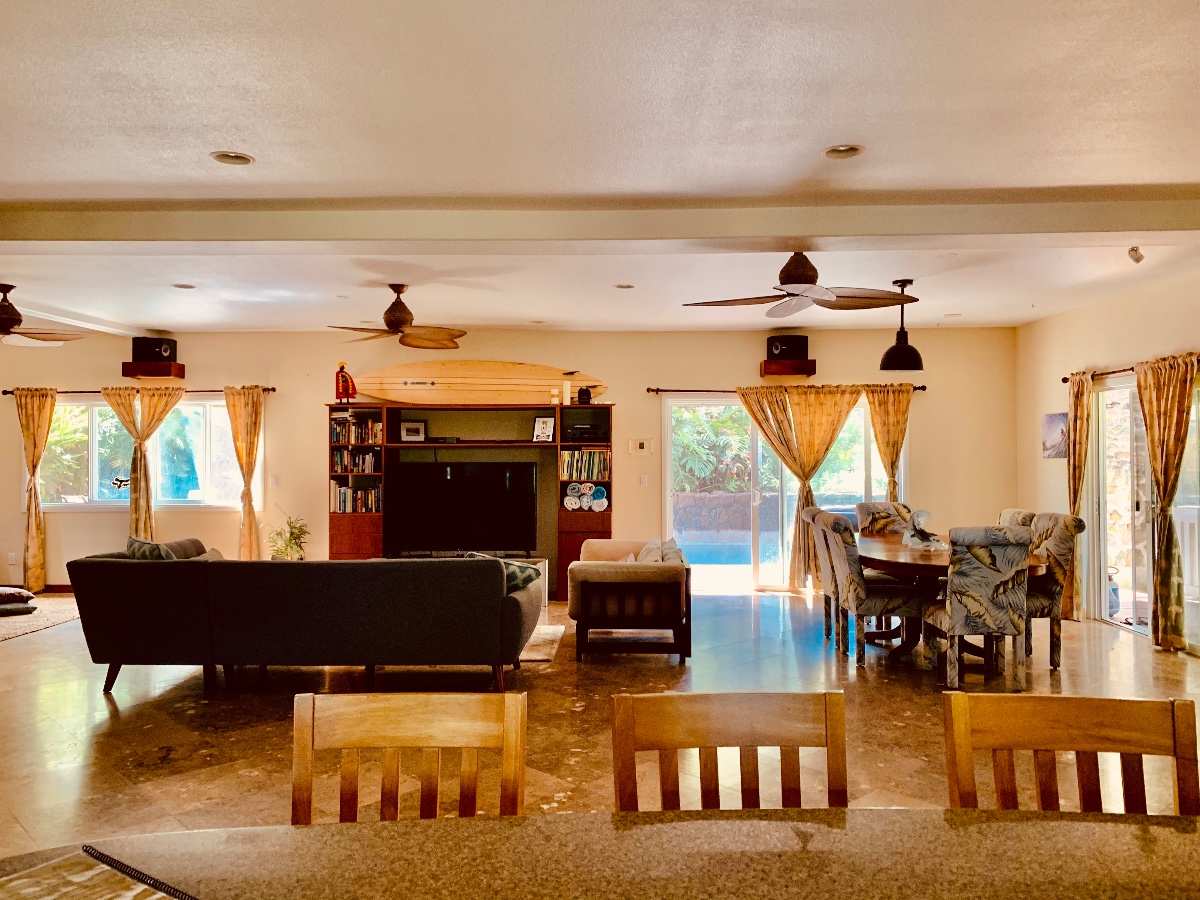 This well-maintained property is in a great location on a private residental cul-de-sac within walking distance to Waimea Bay, Three Tables, Sharks Cove, food trucks, Pupukea Foodland. Close to the bike path & all of the best North Shore surf breaks & beaches. Neighborhood is very safe. Cusom renovated, fully furnished, open floor plan. Split ACs in kitchen, living room & master bedroom. Pool, jacuzzi, outdoor shower, washer/dryer.