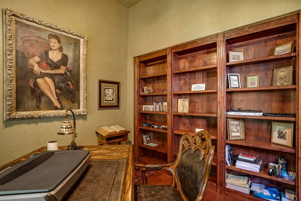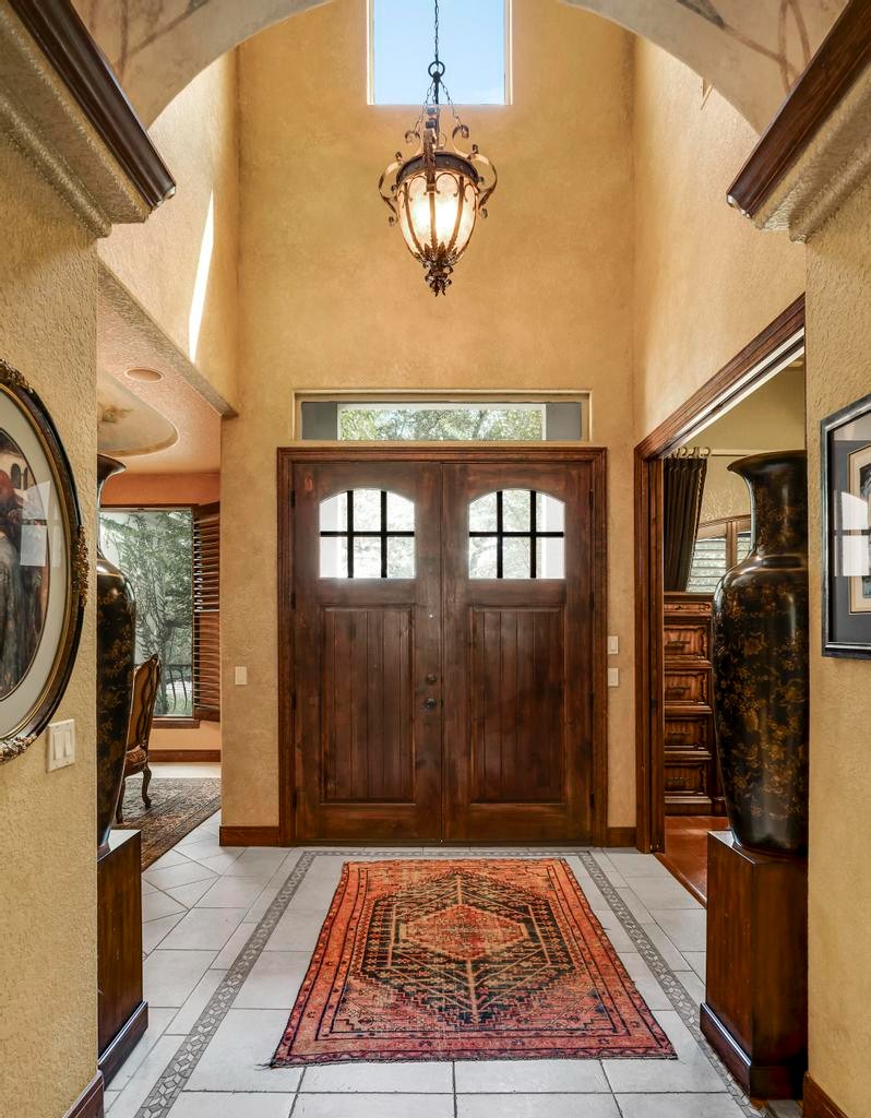 A masterful blend of elegance and comfort, this custom-designed home offers a spacious, thoughtfully crafted layout with elevated finishes throughout. Arched openings, custom lighting, plantation shutters, and fresco-accented ceilings bring timeless character to every room. Dual primary suites on the main level, one with patio access create a versatile floor plan, while upstairs offers two additional bedrooms and baths, a media room, and a game room. The main primary suite is a serene retreat with a sitting area, private patio access, and a spa-inspired bath featuring dual vanities, a freestanding tub, a glass enclosed walk-in shower, and two custom closets. The chef's kitchen impresses with a five-burner gas cooktop, granite counters, double ovens, dual dishwashers, a warming drawer, and a walk-in pantry, complemented by a wine room with additional chiller. Additional features include a hidden room, built-in vacuum system, surround sound inside and out, and a fully gated property with three access points. Outdoors, the home transforms into a private resort with a pool, spa, waterfall bench, beach entry, outdoor kitchen, children's playscape, basketball court, and five koi ponds connected by natural streams. The extended covered patio includes ceiling fans and a misting system for year-round comfort. An oversized three-car garage with built-in shelving adds ample storage. Set behind private gates in a small community near top-rated schools and major thoroughfares, this home delivers the perfect balance of sophistication, functionality, and resort-style living.