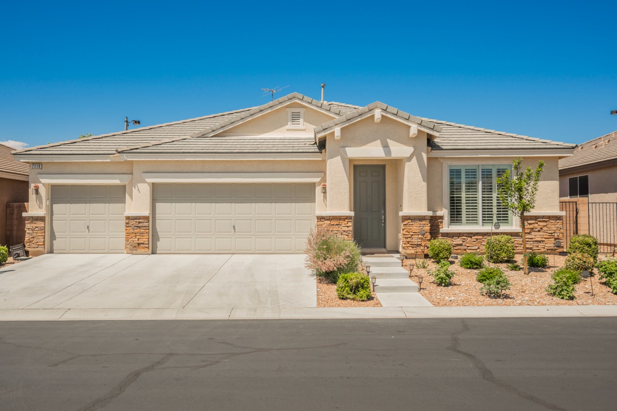 SINGLE STORY HOME WITH 3-CAR GARAGE AND DUAL PRIMARY SUITES IN BEAUTIFUL PROVIDENCE MASTER PLANNED COMMUNITY! This amazing former model home includes TWO primary bedrooms and a large gourmet kitchen with stainless steel appliances, built-in double ovens, built-in stovetop, granite countertops, upgraded cabinets, pull out drawers in lower kitchen cabinet's, huge breakfast style island, formal dining area, large office/flex room space, spacious great room w/ gas fireplace off of the kitchen area, designer plantation shutters on all windows & sliders. Flooring is engineered wood & upgraded tile flooring throughout. Generous overhead storage & shelving located in the garage w/epoxy floors. Enjoy and relax under the oversized covered patio area w/ low maintenance lush landscaping to calm yourself after a busy day. This home is absolutely "MOVE-IN-READY"! Conveniently located off 215 and 1-11/95 easy commute and access to anywhere in the valley. Owner is also providing landscaping