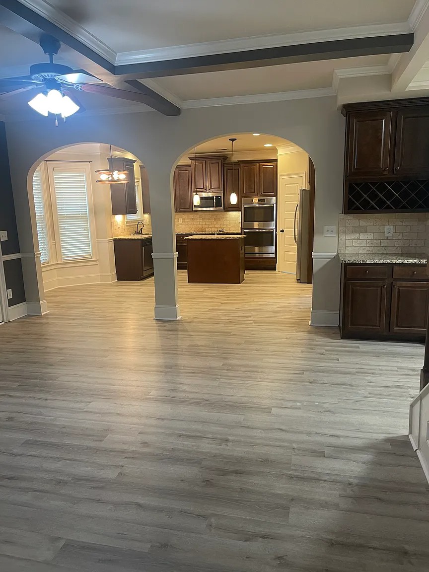 This gentry plan 4-bedroom, 3.5-bathroom home is located less than 5 minutes from Fort Gordon. This home features a gourmet style, eat-in kitchen w/recessed and pendant lighting, granite countertops, large center island, walk-in pantry, stainless steel appliances including double ovens. This open floor plan home has a spacious great room and formal dining room w/coffered ceilings off foyer. New light Fixtures, Brand new LVP throughout entire home. Owners' suite is located on the main level. There is a versatile loft and 3 additional bedrooms upstairs, all with walk-in closets and vaulted ceilings. Jack and Jill bathroom has individual vanities between rooms 2 and 3. Room 4 has its own private bath. 10x24 rear screened-in porch with fireplace and HDMI tv hookup. Large, fenced back yard with shed! This neighborhood has a community pool! Home is zoned for Grovetown elementary, middle and high schools.