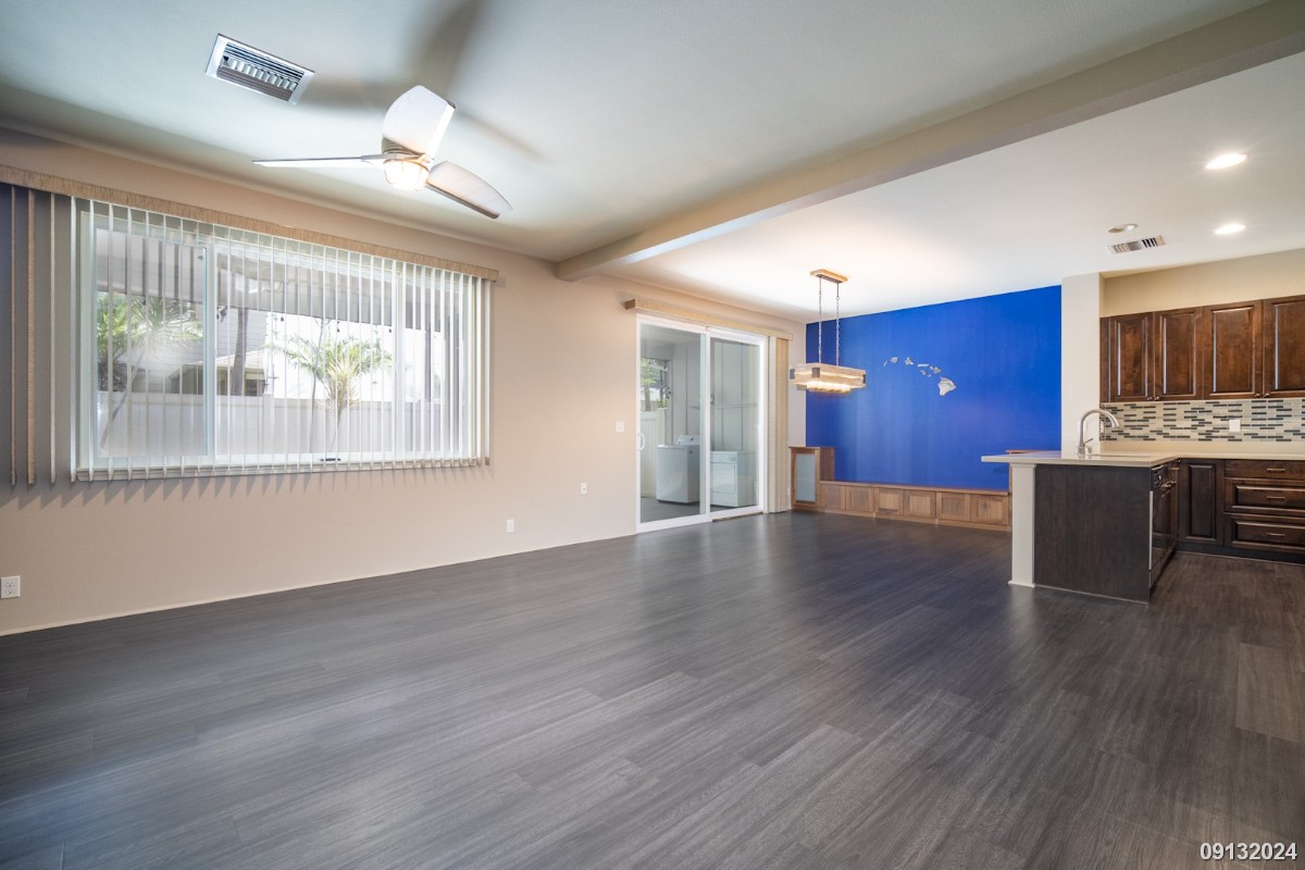 Discover this stunning 4 bedroom, 3 bathroom single-family home that exudes modern luxury with practical versatility. Featuring a 1 bedroom, 1 bathroom en suite, this home offers the ideal space for guests. Enjoy, a modern kitchen with upgraded stainless steel appliances, spacious living and dining areas with high-end finishes, large backyard with both covered and uncovered lanai areas – perfect for outdoor gatherings and relaxation, luxury vinyl flooring throughout for style and durability, Plantation shutters, central A/C, and ceiling fans for comfort and elegance. Best of yet, stay energy-efficient with solar panels and solar water heater to help lower utility costs. Property is a few minutes away from freeway access, schools, restaurants, movie theaters, and shopping complex. Driving distance to Schofield/Wheeler, approx 25 minutes and approx 23 minutes to Pearl Harbor/Hickam, and approx 46 mins to The Marine Corps Base Hawaii.