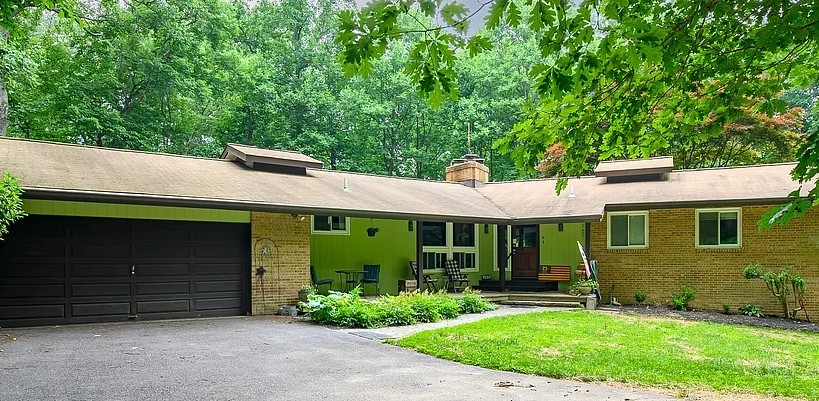 Welcome to your own private estate in Dayton! This custom-built, contemporary home is truly one-of-a-kind. Situated on a park-like 5-acre wooded lot. just steps from the Triadelphia Reservoir and Pigtail Recreation/boat ramp, which offers the perfect blend of privacy, freedom, and convenience. Step inside and be captivated by the unique contemporary design, featuring elegant architectural brick focal walls in the foyer, dining, and living room. The abundance of large windows floods the entire living room and dining room with natural light, creating a warm and inviting atmosphere. The main level boasts a spacious living room with a fireplace and a wood stove, perfect for cozy evenings. The extra-large custom deck off the living room is ideal for entertaining guests or simply enjoying the serene surroundings. The updated kitchen features stainless steel appliances, a walk-in pantry, and a convenient powder room. Two bedrooms with a full bath complete the main floor.