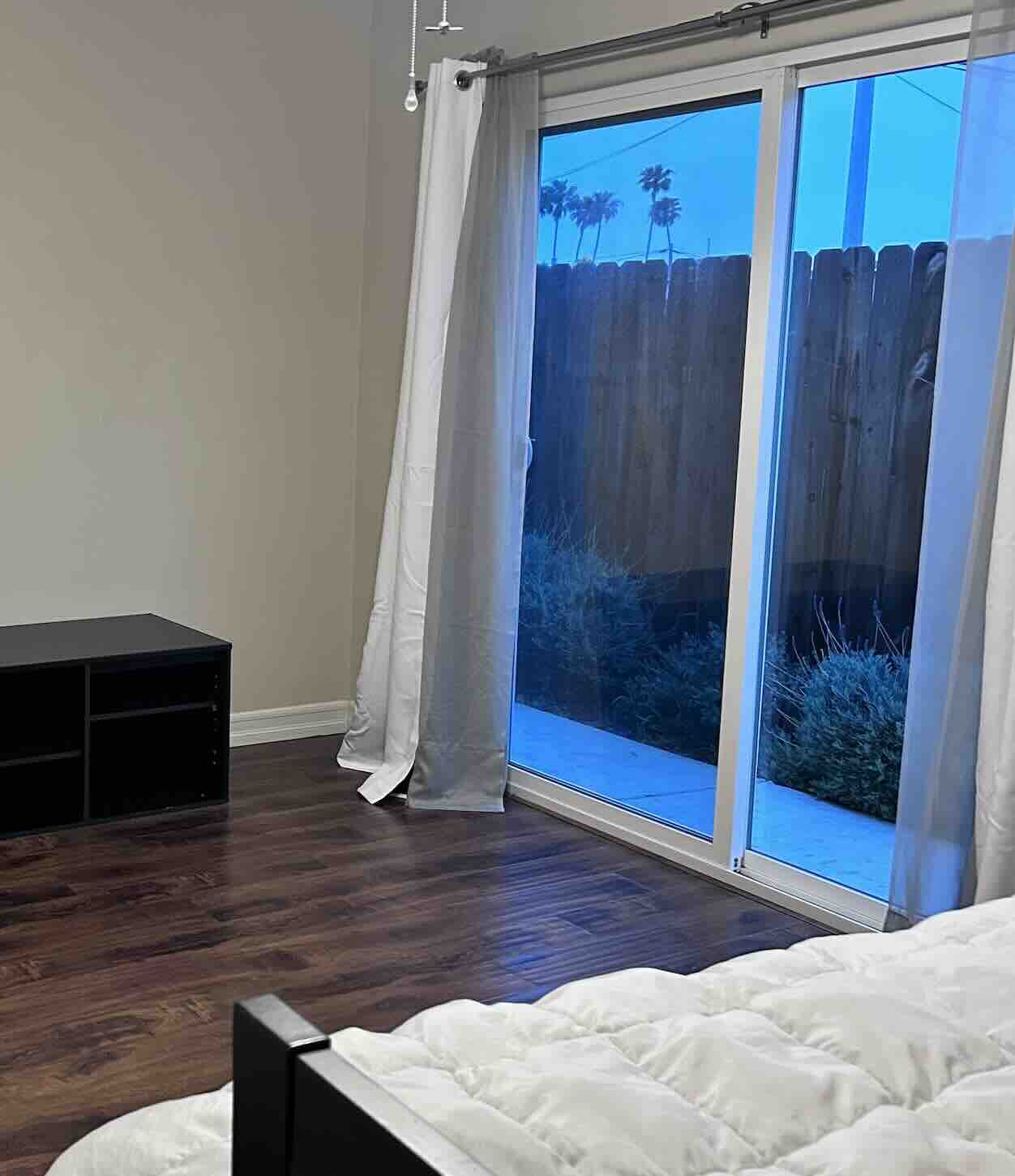 Washer and dryer onsite. There is a patio on the back. This is a 5-bedroom house shared with other professional roommates. This is the only bedroom on the first floor. The common areas are professionally cleaned once a month.