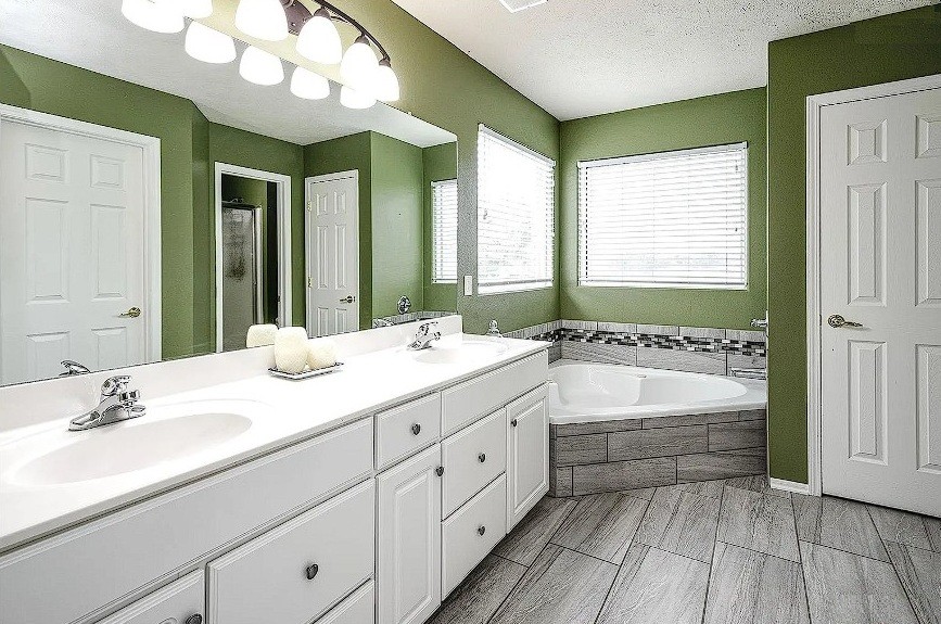 Upstairs, you’ll find four generously sized bedrooms, including a spacious primary suite with double sinks, tiled floors, a whirlpool tub, a separate shower, along with a huge walk-in closet!