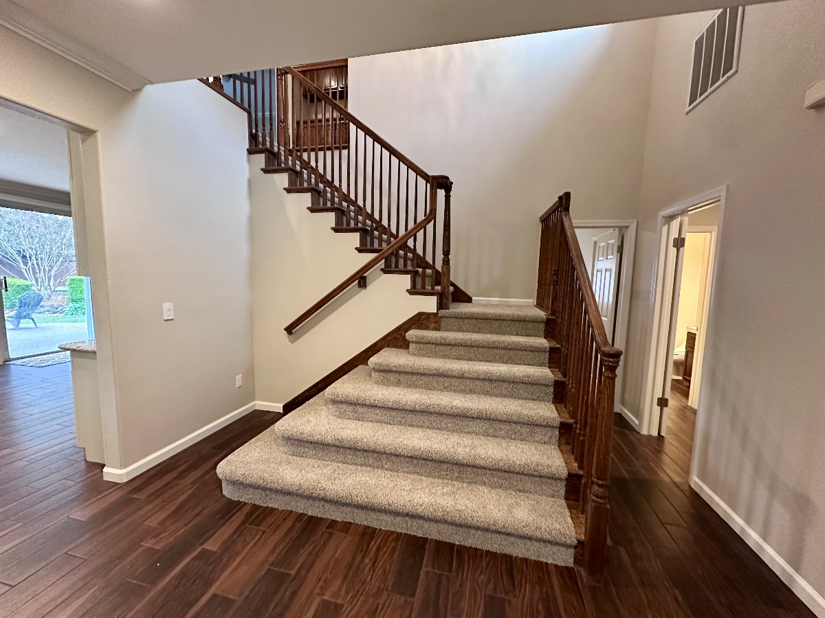 Four bedrooms upstairs with one bedroom downstairs. Complimented by a 3-car garage with a large, wide driveway. Situated on a quiet court. A 30-amp plug in is installed on the exterior wall of the garage for EV charging, boats, or travel trailer.