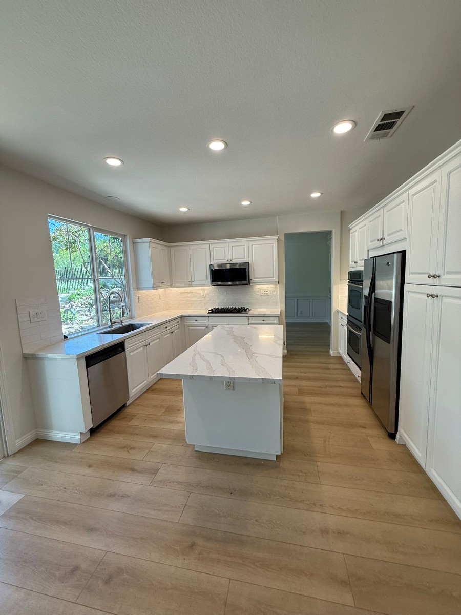 Gourmet Kitchen: Modern appliances, a Viking gas stove, large center island, and ample cabinetry make this kitchen a chef's dream.