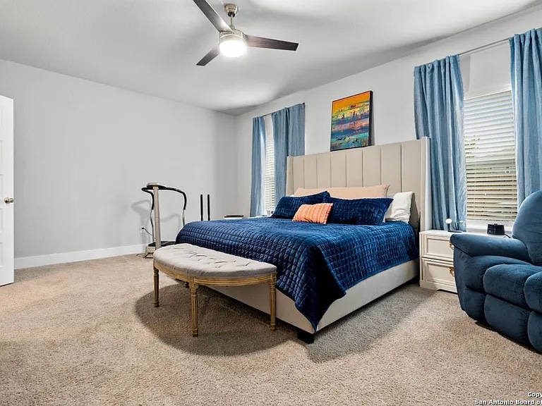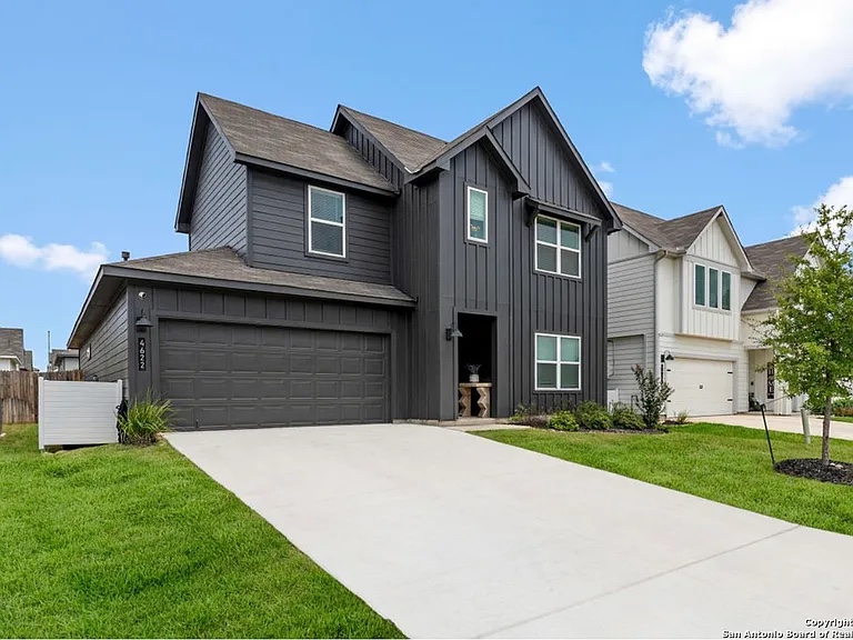 This stunning two-story home boasts 2,711 sq. ft. of thoughtfully designed living space, featuring 5 bedrooms, 3 bathrooms, and a versatile loft. As you step through the foyer, you'll find a secondary bedroom and bathroom conveniently located nearby. The heart of the home is the expansive open-concept area where the kitchen, dining room, and living space flow seamlessly together. The kitchen is a chef's dream with elegant quartz countertops, a classic white subway tile backsplash, modern stainless steel appliances, and a spacious walk-in pantry. The large kitchen island, complete with a deep, single bowl sink, is perfect for meal prep and casual dining. The primary bedroom suite is a serene retreat located at the back of the home for added privacy. It features a generous walk-in closet, double vanity sinks, and a luxurious walk-in shower with a white subway tile surround. Upstairs, you'll find a flexible loft area ideal for a game room or additional living space, along with three more secondary bedrooms and a third full bathroom. Outdoor living is equally impressive with a covered patio and an extended deck, perfect for relaxing or entertaining. The community amenities are unparalleled, featuring a pool with two waterslides, a splash pad, a playground, and a fitness center. Additionally, a second amenity center is under construction, promising even more recreational options, including a basketball court, pickleball court, lazy river, and more!