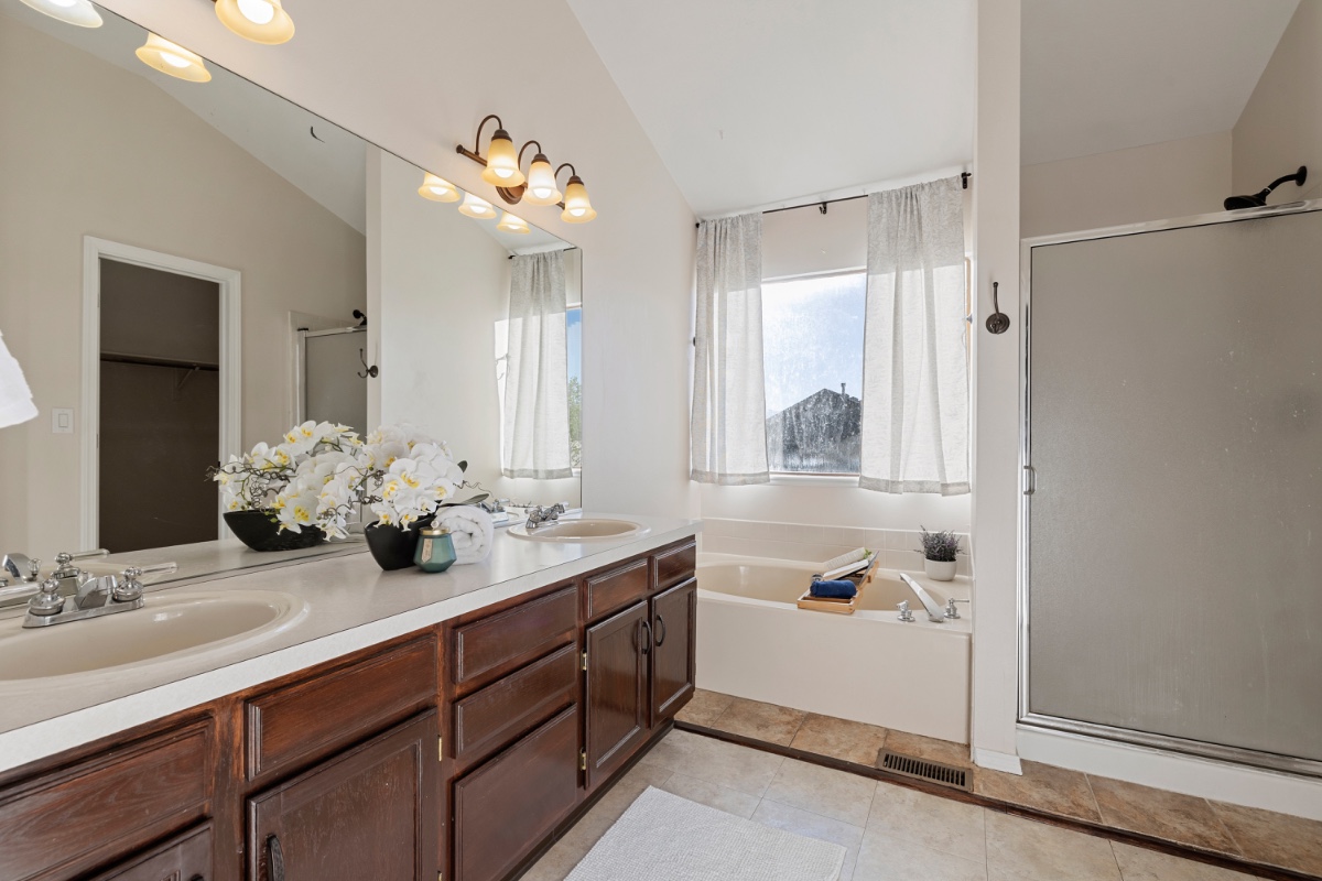 Located in the highly sought-after District 20, this spacious 5-bedroom, 4-bath home offers over 3,000 sqft of comfort and style. Conveniently located near parks, schools, hospitals, and shopping, this property provides easy access to everything Briargate has to offer. Upstairs, you'll find 4 generously sized bedrooms, including a primary suite with a 5-piece bath and walk-in closet. The gourmet kitchen features black granite countertops, a subway tile backsplash, a farmhouse sink, stainless steel appliances, and a butcher block island, perfect for hosting gatherings. Enjoy modern conveniences like air conditioning and a newer roof. Surrounded by mature trees, including beautiful Aspens, the backyard is an oasis with a stamped concrete patio and a pergola—ideal for outdoor entertaining. This home combines comfort, location, and style in one perfect package!