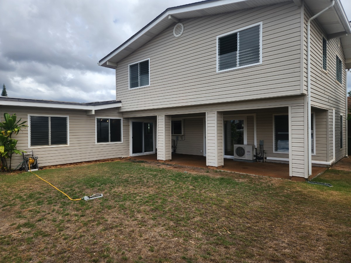 Extra spacious 2 story 6 bedroom, 3.5 bathroom Mililani home with over 3000 sq ft of living area. 2 bedrooms / 2.5 bathrooms downstairs, and 4 bedrooms and 1 bathroom upstairs. Downstairs has laminae flooring and upstairs has carpeting. Large living room and family room that both open to rear lanai. Renovated kitchen & bathroom, freshly painted interior, 5 split ACs, ceiling fans in all the bedrooms, extra freezer, 21 panel PV electric system & solar water heater to save on electric bill, large covered lanai, 3 outside storage closets, nice lawns in front and rear to enjoy. Located a just a few blocks from Uka elementary school. Mililani is an excellent community with 4 shopping centers & 7 recreation centers and lots of parks. Rent includes monthly yard service. No smoking. Renters insurance required. Tenant pays own electricity, water, sewer, cable, internet. $30 application fee per adult. One year lease. Must be well qualified, gainfully employed and have good credit. One small pet may be considered by owner. Home has been professionally cleaned. 3D Tour https://my.matterport.com/show/?m=tiWD45FtGr9