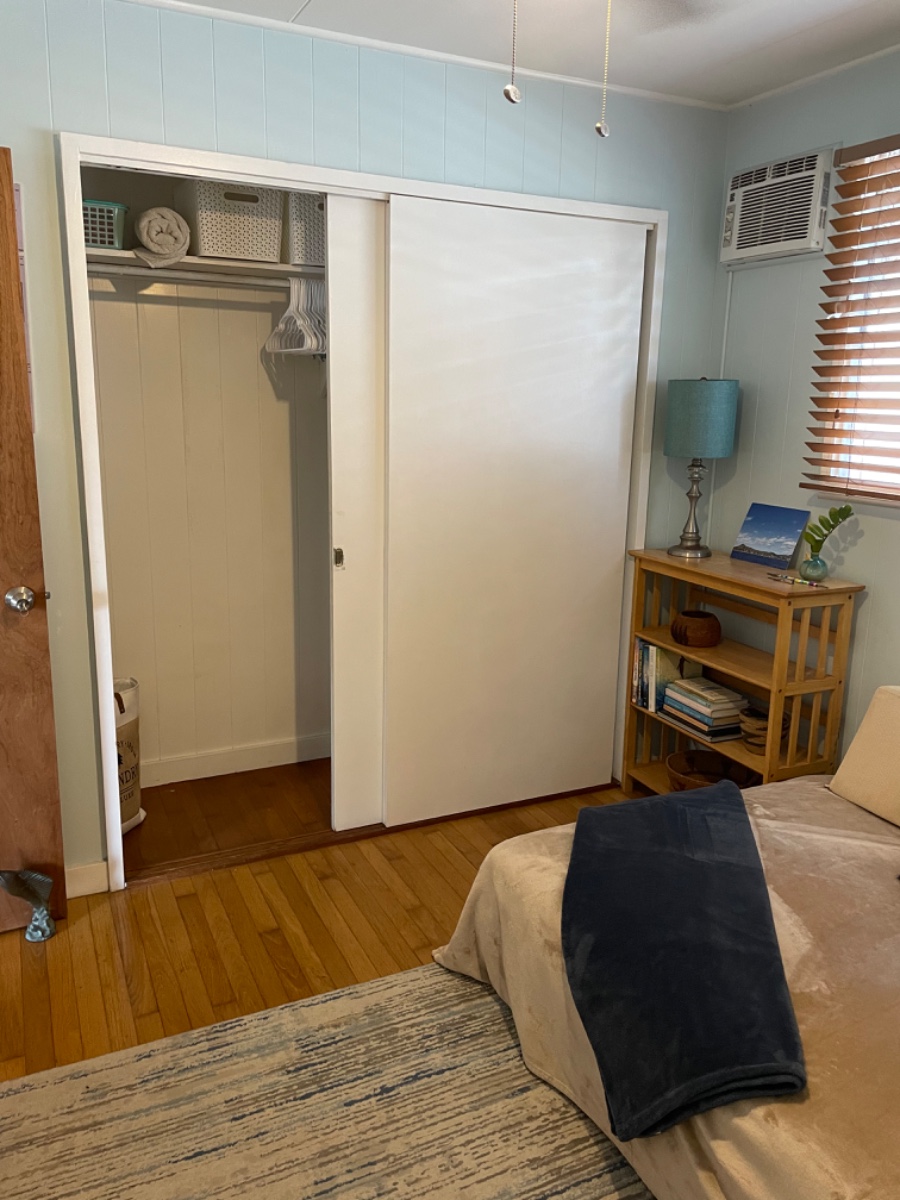 Cozy room in peaceful Kailua home. Ceiling fan, a/c, large window, and closet space. Hall full bathroom is designated for this room. Comfy full size bed. All utilities included.