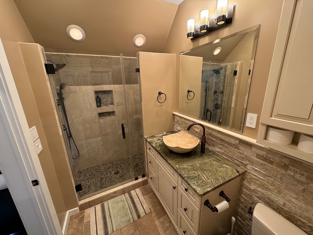 A compact kitchenette provides everything needed for light cooking, including a microwave, toaster oven, and mini-fridge. Please note that there is no full stove or oven. The home is ideal for short-term or transitional living, offering both comfort and flexibility. The neighborhood is quiet and friendly, and while pets and smoking are not permitted, the property owner does have dogs in a shared fenced yard.