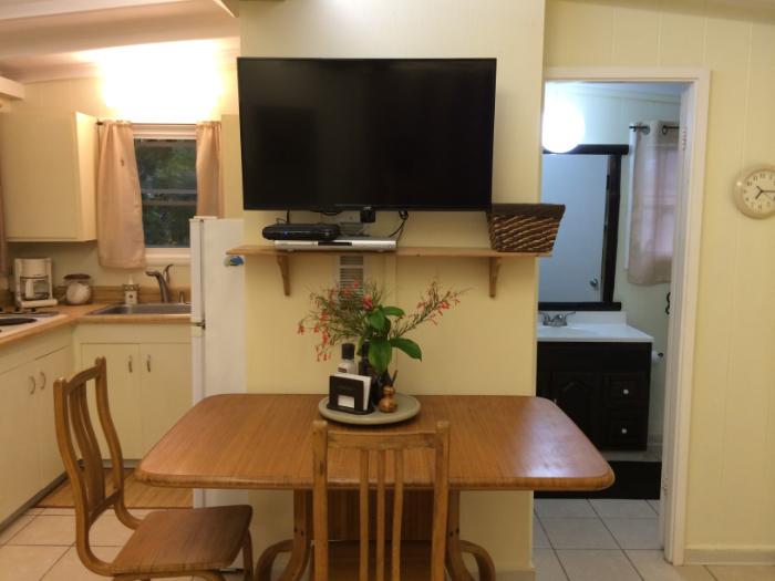 Detached partially-furnished studio with separate private entrance one block from Kailua Beach!  Clean, safe, ceramic - tiled unit with utilities included (electricity, water, broad-band WiFi, pest control, yard service); apartment-size fridge/freezer; queen-sized bed; rataan 3 seater couch; small dining table/chairs (2); small full bath (shower); galley-style kitchen area with 4-burner  electric hob.