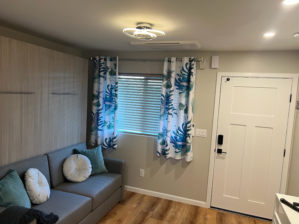 Welcome to your cozy retreat in the North Park neighborhood! This stylish studio apartment features everything you need for a comfortable stay. The space is equipped with a queen Murphy bed and couch combo, full kitchen (fully stocked), large closet, functional workspace, onsite laundry in the garage next to the studio, private patio, and full bath with shower. There is a parking space in the driveway and abundant street parking.