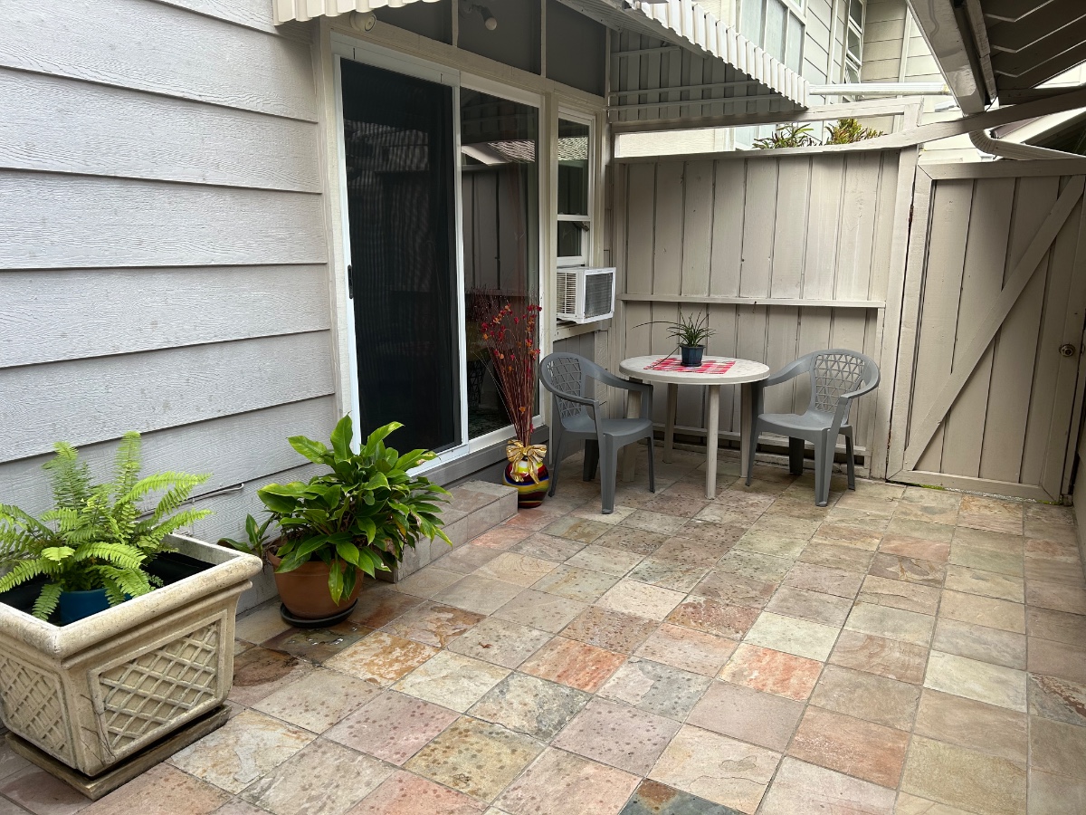 The beautiful and breezy, enclosed private courtyard is the secured entrance to your unit. It has a table and chairs to relax or eat outdoors. The shared washer and dryer are steps away inside the garage.