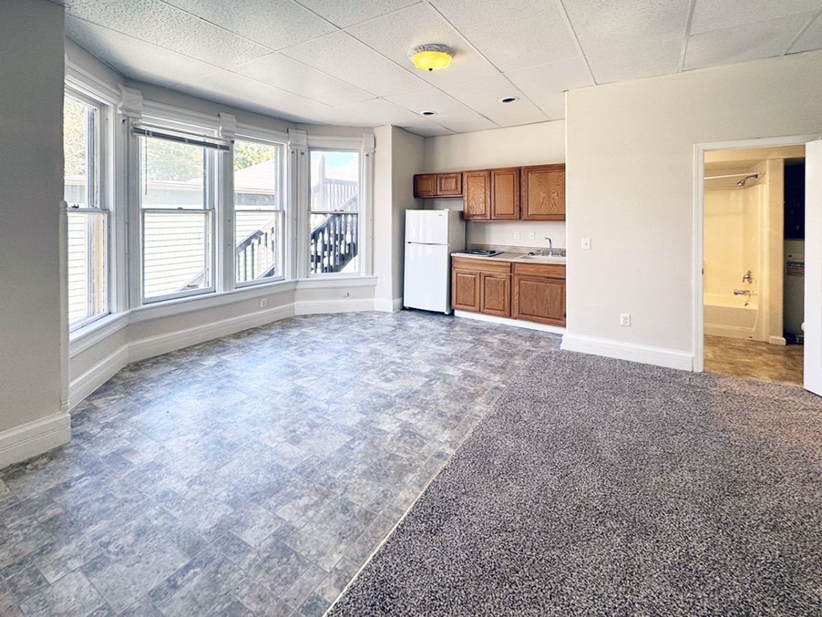 First-floor studio apartment available in a central downtown Colorado Springs location. Roughly 550 sq ft unit features a covered entry that leads to the large studio apartment.