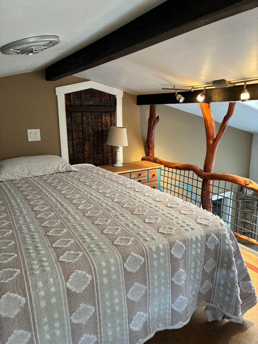 We are offering an eclectic studio loft apartment for one. This Charming space Includes dressers, bed, nightstand, table, chairs and an outdoor space to lounge! Feel free to message with any questions.